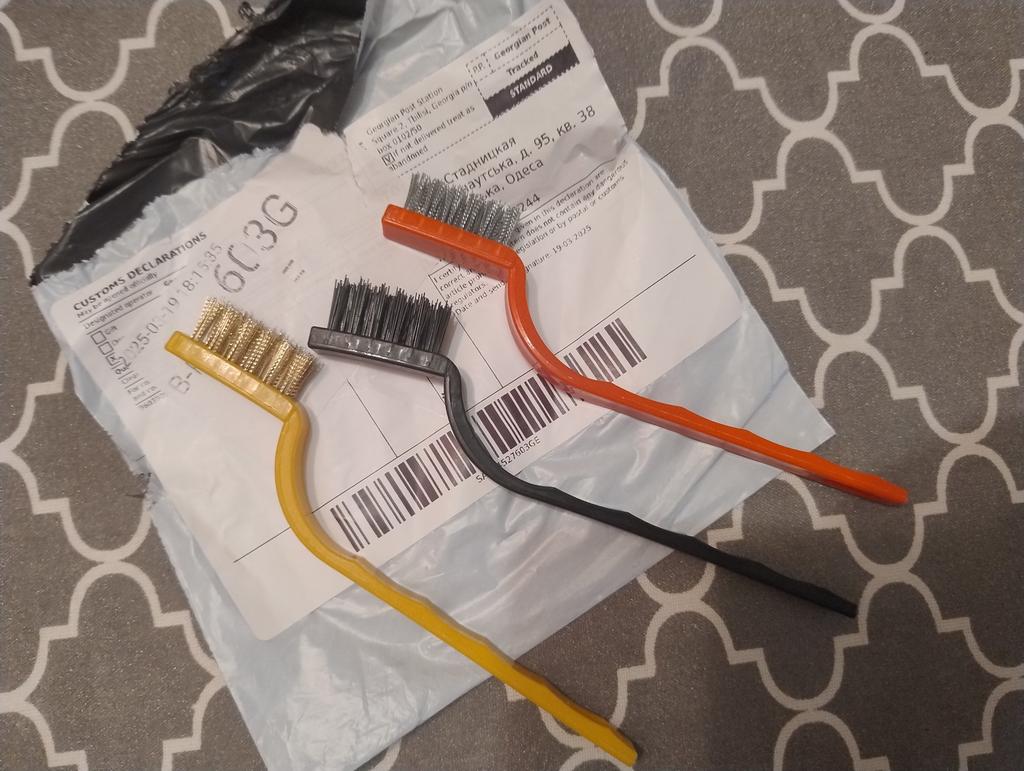 Sind ganz angekommen, Bürsten sind aus Metall, habe sie nicht ausprobiert, aber ich denke, sie werden das sein, was man braucht.