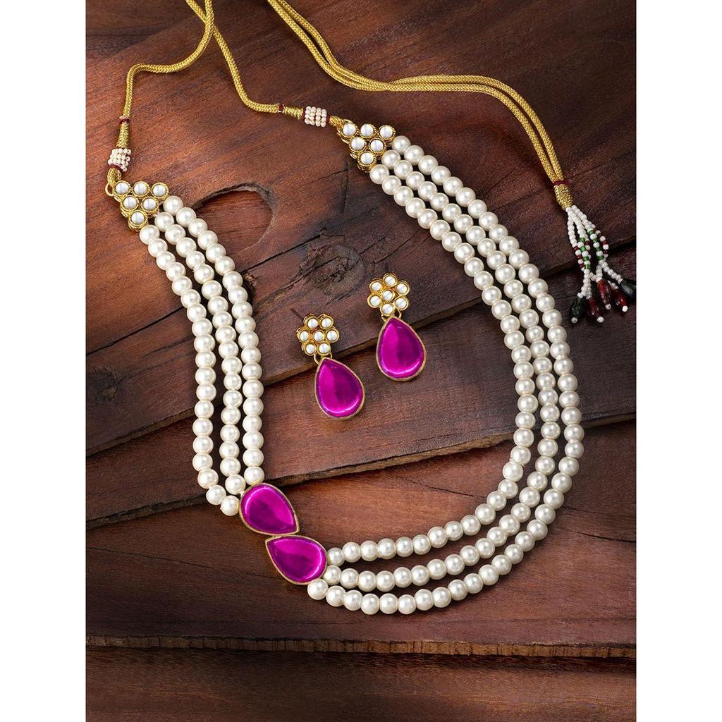 Peora Perlen-Mala-Halskette mit Ohrringen für Damen und Mädchen, traditionelles, stilvolles ethnisches Schmuckset