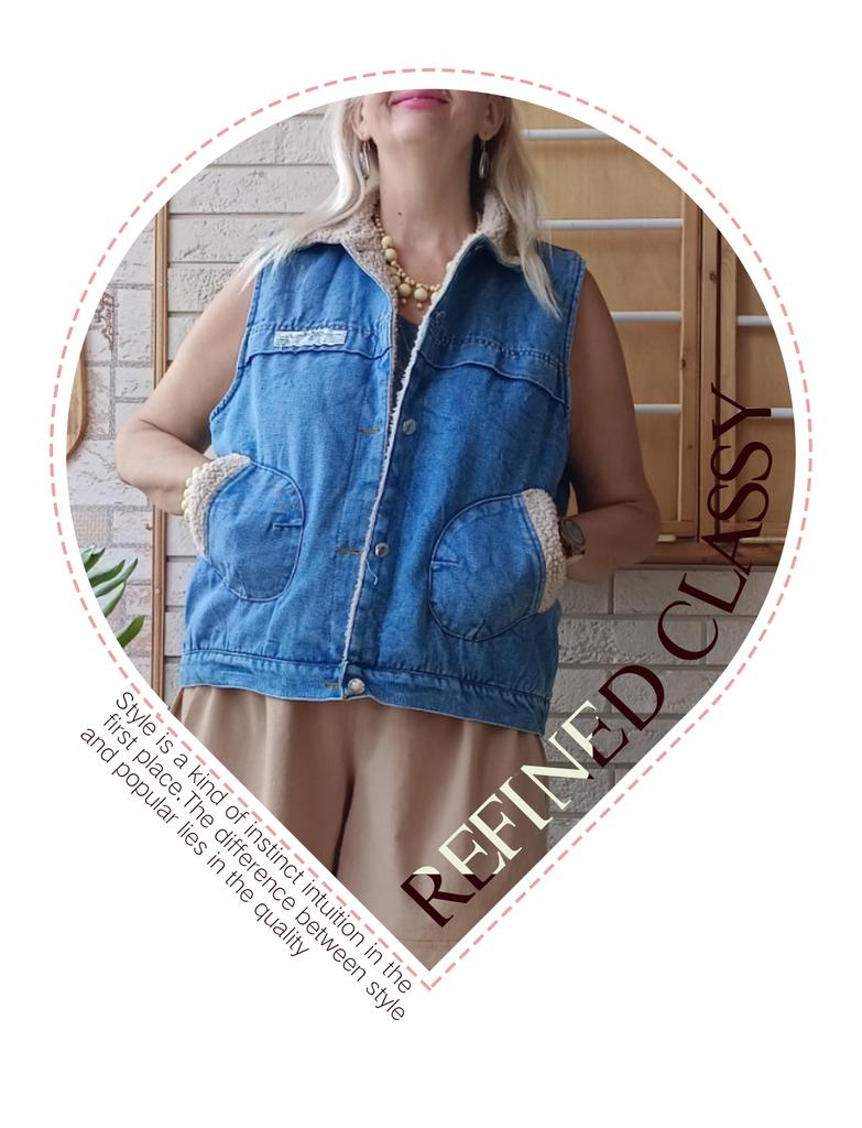 Herbst Winter Damen Fleeceweste Dicke, lockere, beflockte Jeansweste, ärmellose Jeansjacke
