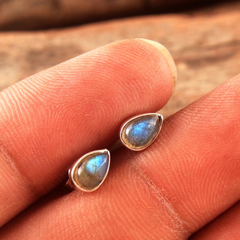 Natürlicher Labradorit-Karneol-Mondstein-Ohrstecker, 100 % 925er Sterlingsilber, handgefertigter Schmuck