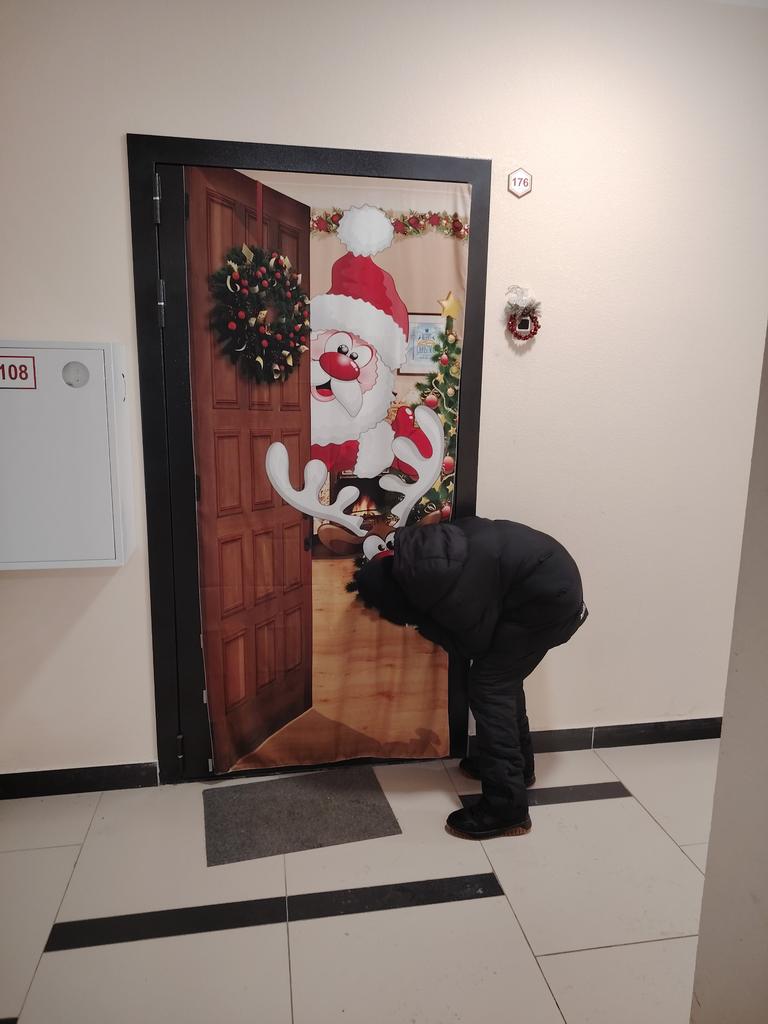 Weihnachts-Türabdeckung, bunter Aufdruck, Weihnachts-Türdekoration, Hintergrund, Haustür-Dekoration, Urlaub, festliche Weihnachtsparty-Zubehör