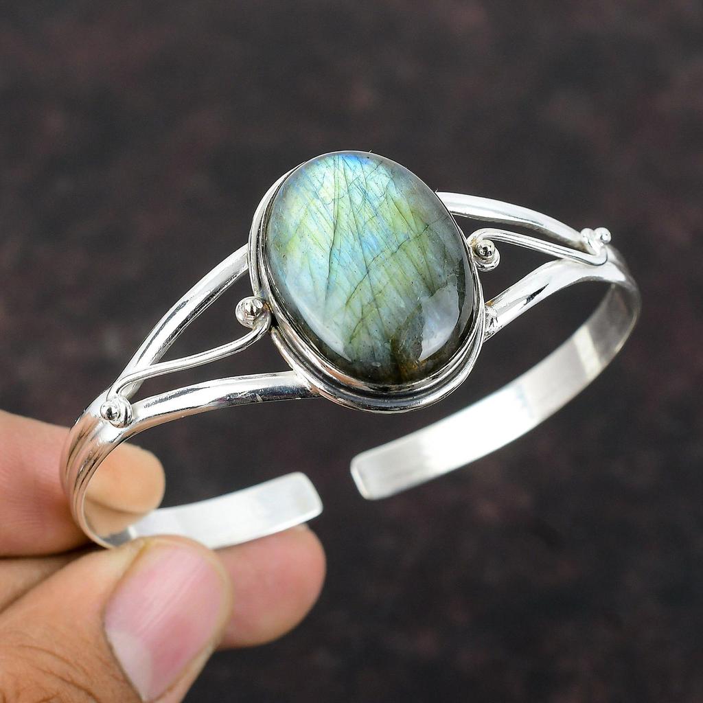 Labradorit Manschettenarmband 925 Sterling Silber Armreif Verstellbares Manschettenarmband Handgefertigter Designerschmuck Original Edelsteinschmuck für Geschenke