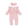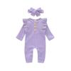[Eigenschaften] Baby-Strampler für Mädchen, lange Ärmel, Baby-Herbst-Outfits für Mädchen, Rundhalsausschnitt, gerüschte Schulterpartie, süß und attraktiv, Design mit Druckknopf-Beinöffnungen, ideal für einfaches Windelwechseln.
