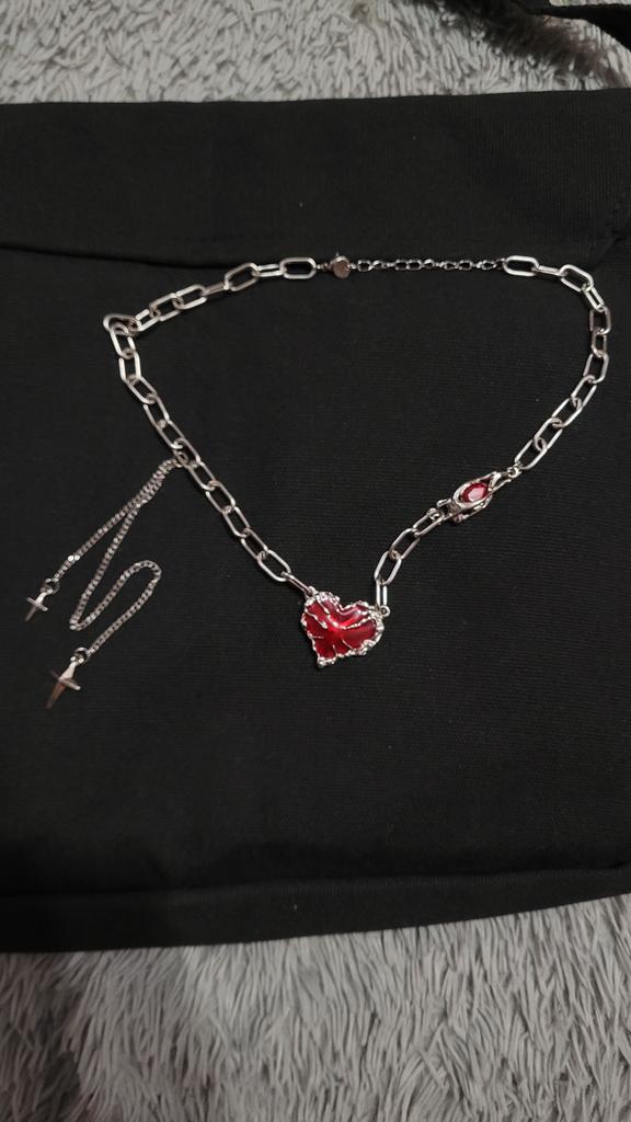 Faitolagi 1 Stück rote Liebesspleiß-Halskette, Stern-Anhänger-Halsketten, Y2K-ästhetische Splitter-Metall-Schlüsselbeinkette für Frauen und Mädchen, Schmuck, Halloween-Geschenk