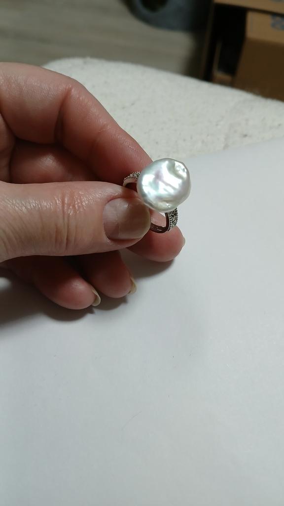 LSOOYH Natürliche Süßwasser Große Barocke Perle Ringe Für Frauen Klassische Silber Farbe Party Ring Perle Schmuck