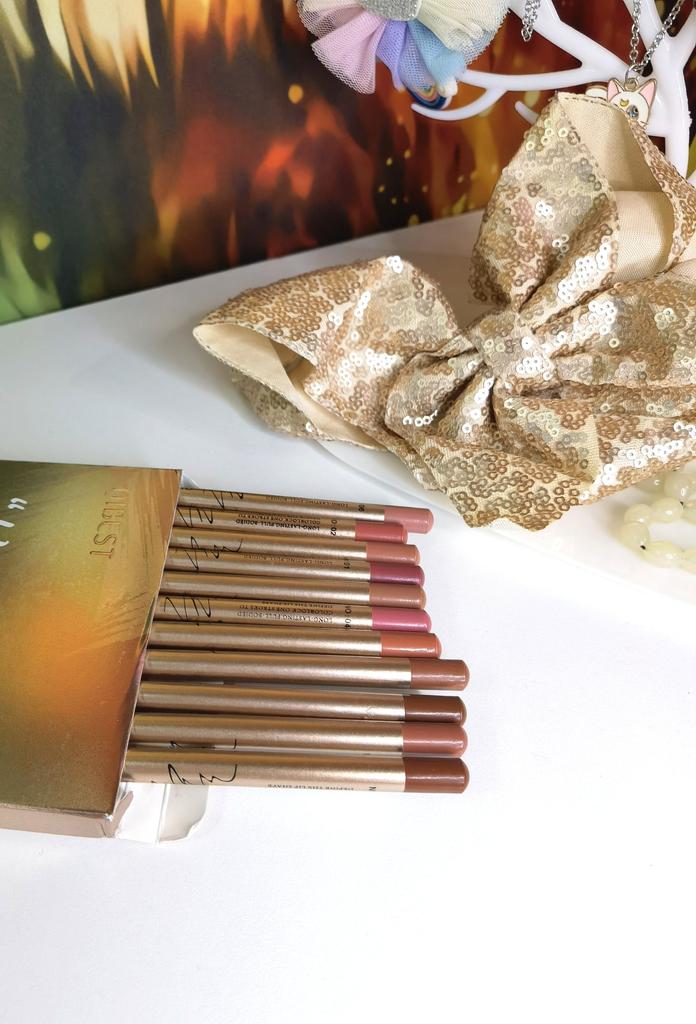 12 Farben Matte Lip Liner Set Highlights Die Farbe ist nicht leicht zu verwischen Dauerhafte Antihaft-Tasse Gold Tube Wasserdichtes Matte Lip Liner Damen-Make-up