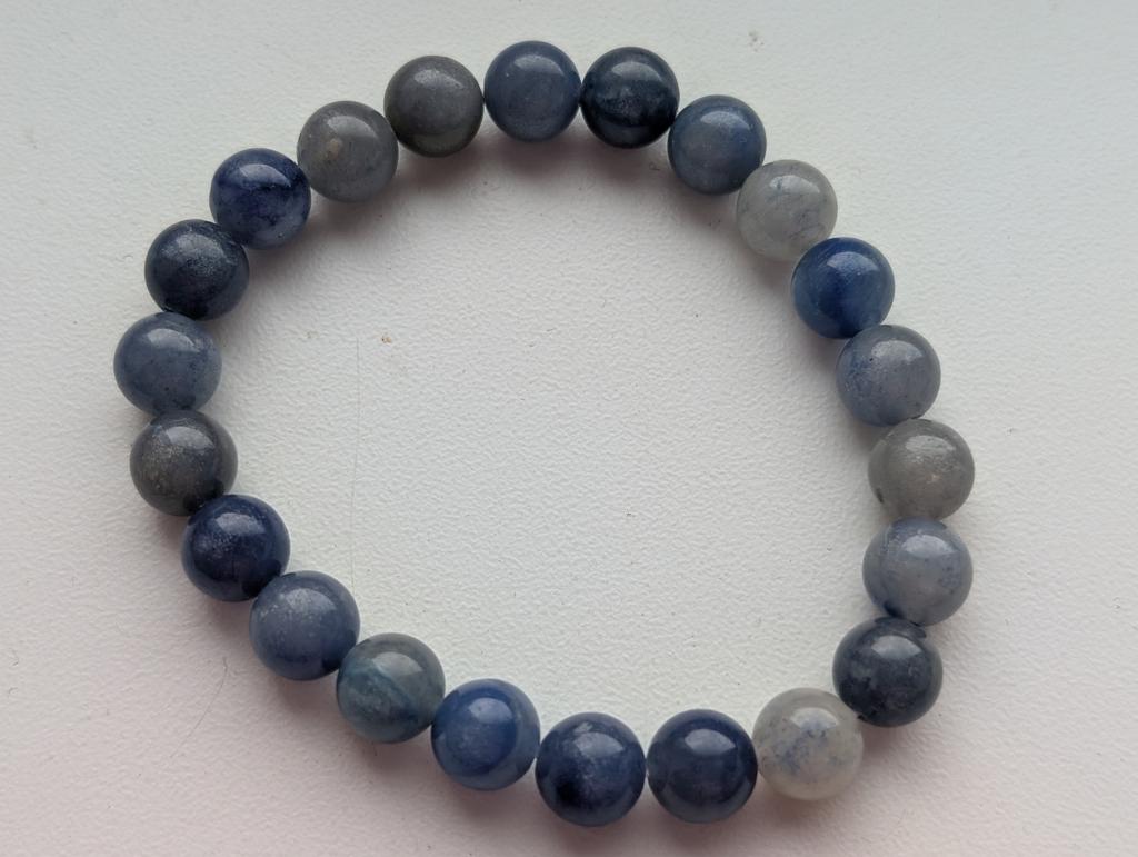 Die Farbe Blau ist nicht annähernd vorhanden. Es sind Grautöne von Perlen.
