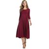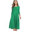 Sommerkleid für Damen, modisch, Rundhalsausschnitt, mittlere Ärmel, einfarbig, plissiert, lange Kleider