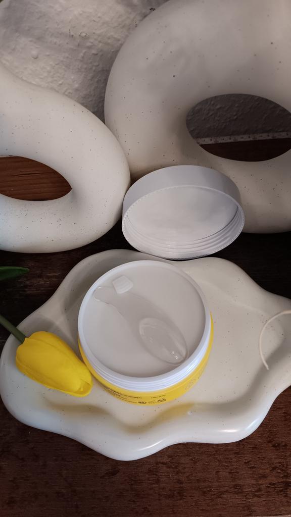 💚BACIEL AUGENMASKE💚 Das ist ein Verband -schützt und verbessert die Feuchtigkeitsversorgung der Haut um die Augen - hellt auf und mindert Fältchen. Dank dieses Produkts 🤩 Meine Haut unter den Augen blieb unglaublich glatt, hydratisiert und frisch, als hätte ich die ganze Nacht geschlafen! 🤩 🍀ZUTATEN Diese Maske besteht zu 75 % aus Sanddorn – Dieses Produkt ist frei von Parabenen, Mineralöl, Silikon und Alkohol. Enthält einen Retinol-Komplex, der Hautfalten reduziert und die Elastizität verbessert – Ascorbinsäure (Vitamin C) und die Vitamine B3, B5, C und E tragen zur Verbesserung der Hautstruktur und des Hauttons bei. NOCH HYDRATISIERTER – Enthält 8 Arten von Hyaluronsäure und den natürlichen Feuchtigkeitsfaktor (NMF), um die Haut um die Augen herum noch besser mit Feuchtigkeit zu versorgen. Und statt künstlicher Chemikalien enthält die Maske natürliche Inhaltsstoffe wie Limette, Minze, Apfel und Zitrone. DERMATOLOGISCH GETESTET – Laut dem dermatologischen Testergebnis dieser Augenklappe lag der Reizgrad bei 0,00. So kann es auch bei empfindlicher Haut rund um die Augen bedenkenlos angewendet werden. Natürlich handelt es sich um ein Produkt mit einer Doppelfunktion zur Aufhellung und Verbesserung von Falten! 🍀BENUTZEN Ich habe die Maske mit dem mitgelieferten Spatel auf die gereinigte Haut aufgetragen. Ich habe es nach 30 Minuten entfernt und die restliche Essenz sanft auf meine Haut getupft, damit sie einziehen kann. 🍀VERPACKUNG Die Verpackung ist einwandfrei. Die Box hat eine schöne gelbe Farbe und sieht elegant und hochwertig aus. Es kam in einwandfreiem Zustand und mit drei Mustern als Geschenk an 🎁😍 🍀SCHLUSSFOLGERUNG👏👏👏👏👏 Diese Augenbinde müssen Sie unbedingt bestellen, denn sie ist fabelhaft und von ausgezeichneter Qualität