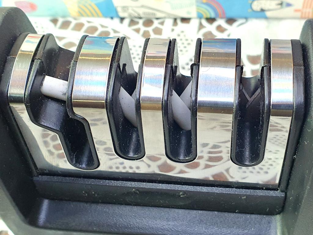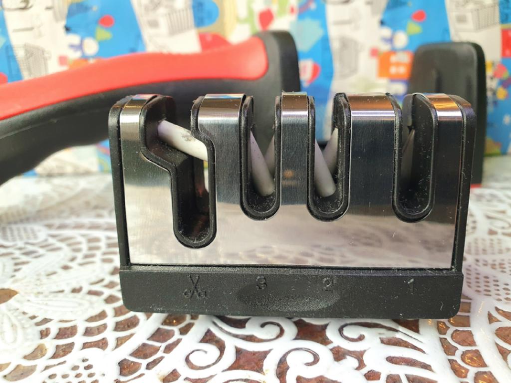 Schärfer für Messer und Küchenscheren ! ✈️ Das Paket brauchte weniger als einen Monat nach Moldawien. ✅Material: Kunststoffkörper, Metall . ✅ 3 Wiederholungen. zum Schärfen von Messern und 1 Loch. zum Schärfen von Scheren ✅Komfortabler Griff und Silikonboden verhindern ein Verrutschen des Spitzers. ✅Die Qualität ist ausgezeichnet! ✅Ich bin mit dem Kauf zufrieden und empfehle es auf jeden Fall zum Kauf ❤️