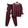 Stylistisches Aussehen: Dieser Anzug besteht aus einem langärmligen Oberteil mit Rundhalskragen und kontrastierenden Einsätzen und verleiht Ihrer Loungewear-Kollektion einen Hauch von Stil.