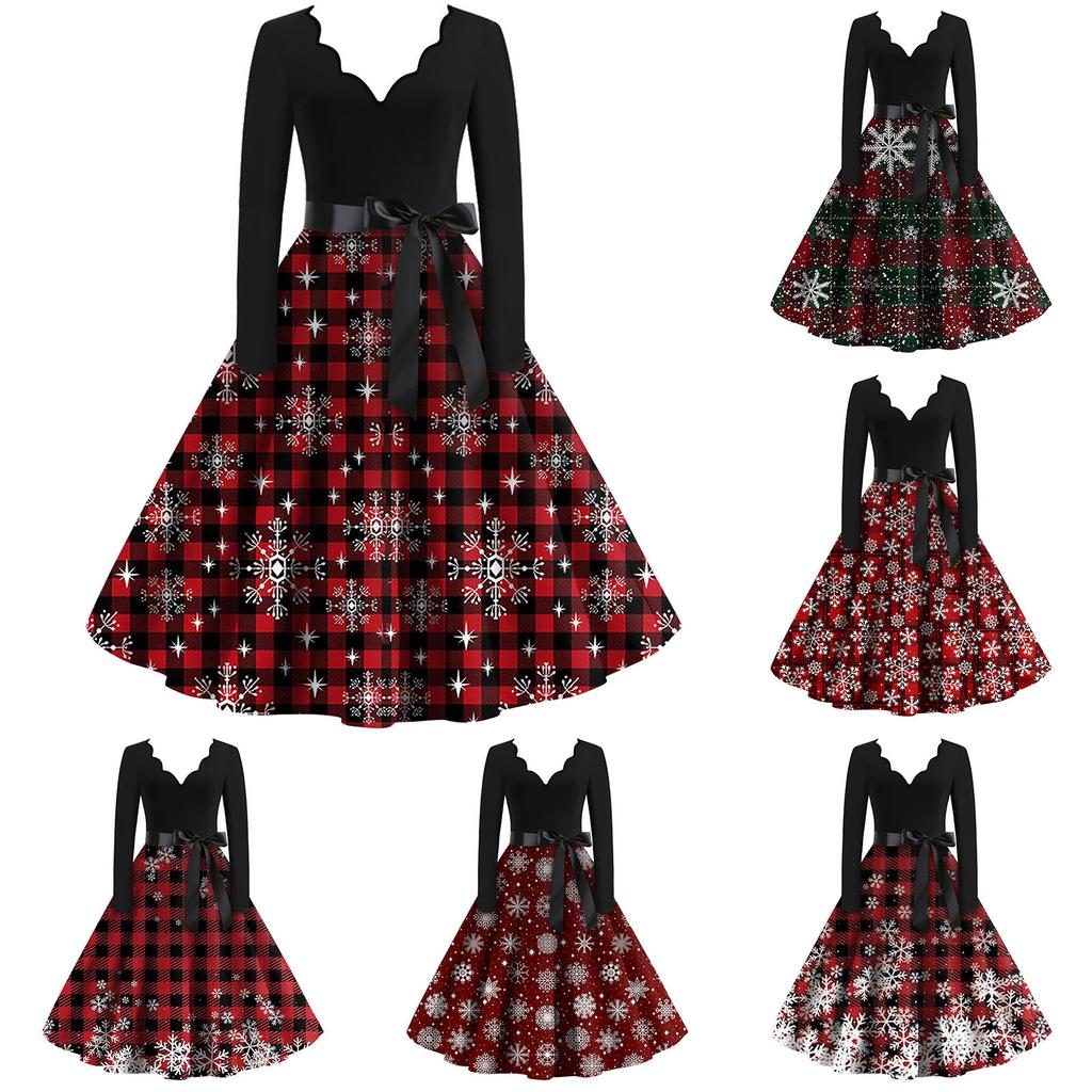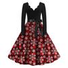 Damenmode mit V-Ausschnitt, lässig, schmal, weihnachtlich bedruckt, langärmelig