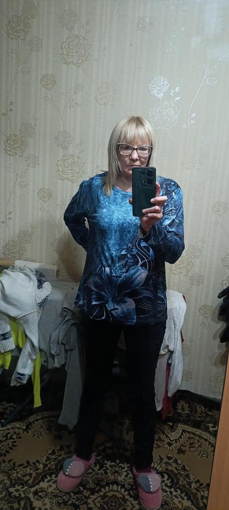 Die Bluse ist dünn, für den frühen Herbst, aber angenehm. Synthetik 💯. Für eine Körpergröße von 155 sind die Ärmel etwas zu lang, aber sonst ist alles in Ordnung. Für 50-52 hat es gepasst