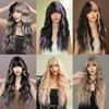 PERÜCKEN Langer Körper, gewelltes silbernes Eschenhaar, Perücke mit Pony für Frauen, tägliche Party, hochdichtes Haar, Ombré-Perücken, hitzebeständige Faser