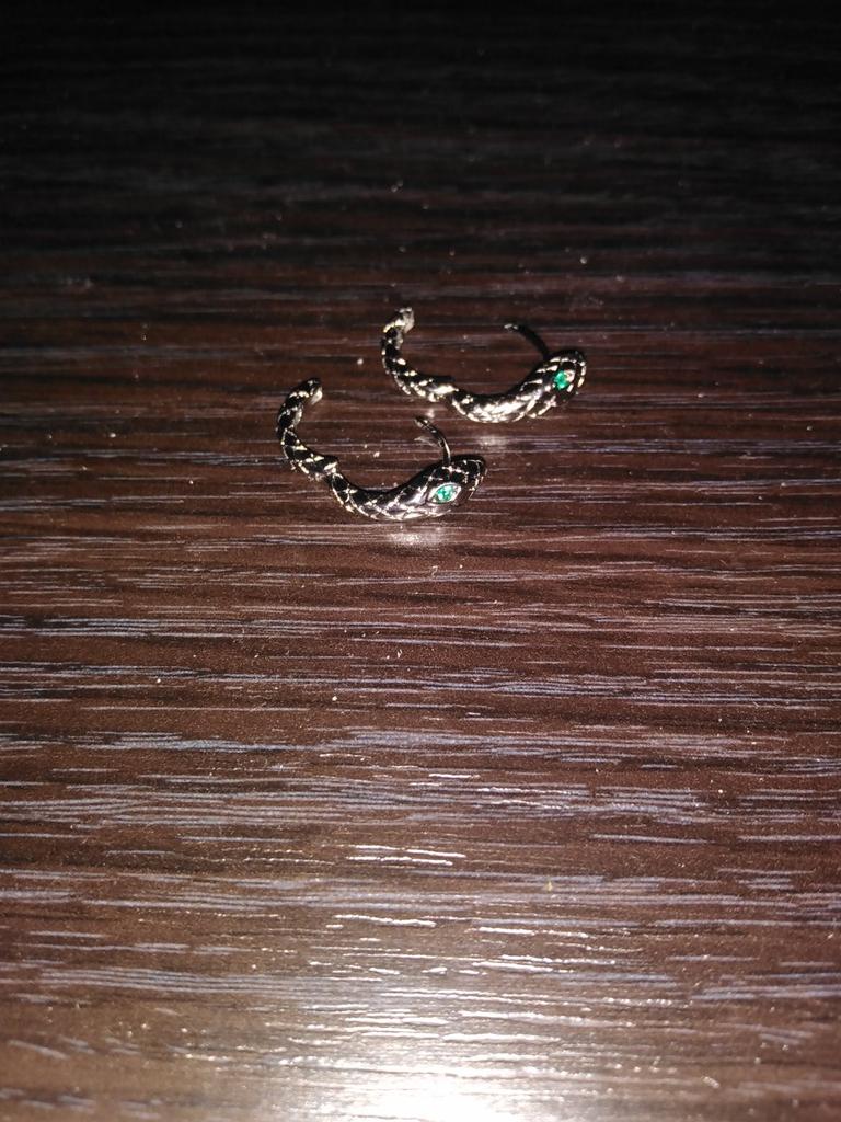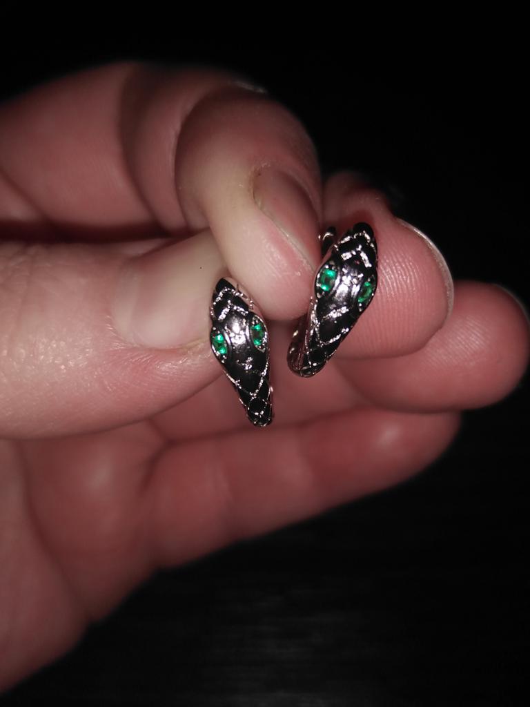 Schlangen-OHRRINGE Creolen mit kleiner Schlange. Die Ohrringe kamen mit Sendungsverfolgung innerhalb von 12 Tagen in Italien an. Gut verpackt in Luftpolsterfolie kamen sie unversehrt an. Verpackung: kleine Plastiktüte mit Reißverschluss. Klassische Form, ein kleiner silberfarbener Ring in Schlangenform mit einem kleinen grünen Steinbesatz. Sehr leicht, sie stören nicht. Stahlmaterial. Abmessungen des Kreises: Durchmesser ca. 17 mm. Der Verschluss ist dicht. Die Ohrringe haben keine Mängel und machen einen sehr guten Eindruck. Ich empfehle den Kauf 👌👌👌
