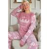 Rotes Hoho-gemustertes Plüsch-Pyjama-Set für Damen