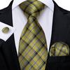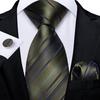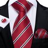 Dibangu Herren-Krawatte, gestreift, gewebt, Krawatte, Einstecktuch, Manschettenknöpfe, Rot, Blau, Gold, Grau