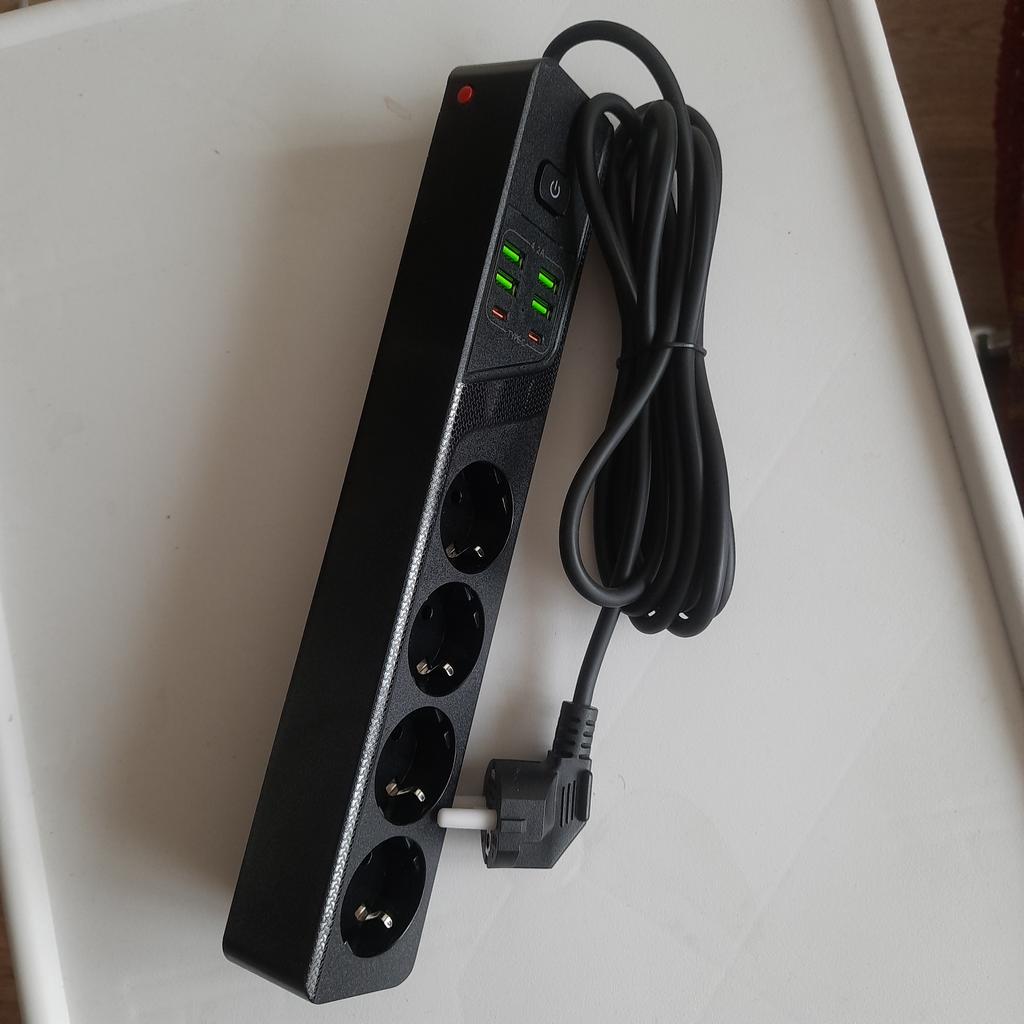 Steckdosenleiste: Ausgestattet mit 4-fach-Steckdose/4 USB-Anschluss/2 Typ-C-Anschluss/Schalter, mit dem Sie mehrere Geräte gleichzeitig aufladen können, außerdem Platz auf dem Schreibtisch oder der Arbeitsplatte sparen und für Ordnung sorgen.