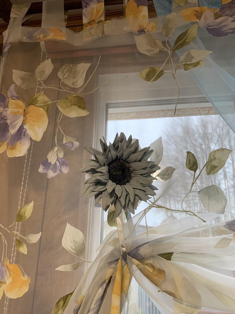 Der Halter ist sehr hübsch. Die Blume ist groß, an den Vorhängen sieht er ausgezeichnet aus.