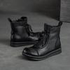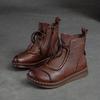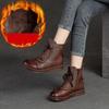 Johnature Flache Unterseite aus Plüsch und warmer Baumwolle, einfarbig, Retro-Stil, kurze Damenstiefel aus echtem Leder