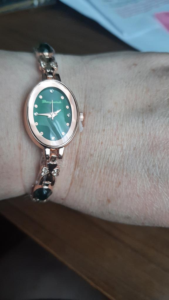 Eine sehr schöne Uhr, ich habe sie zu einem grünen Kleid getragen.