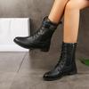 Herbst- und Winterschuhe, Damenstiefel, flacher Boden, Übergröße, Gürtelschnalle, niedriger Absatz, kurze Stiefel für Damen