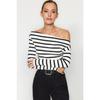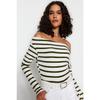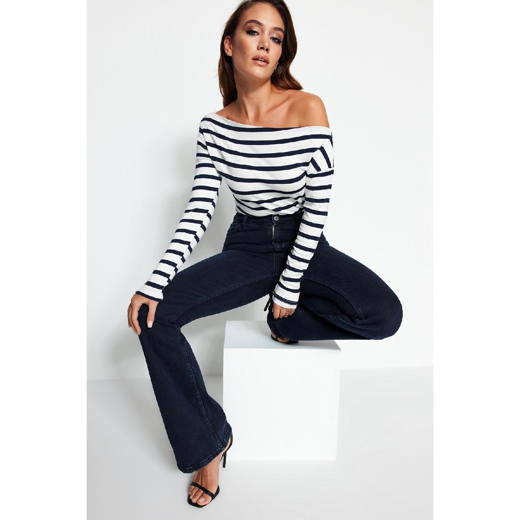 Marineblau gestreifte, hochwertige, weiche Strickbluse mit U-Boot-Ausschnitt und taillierter Passform Twoaw24bz00227