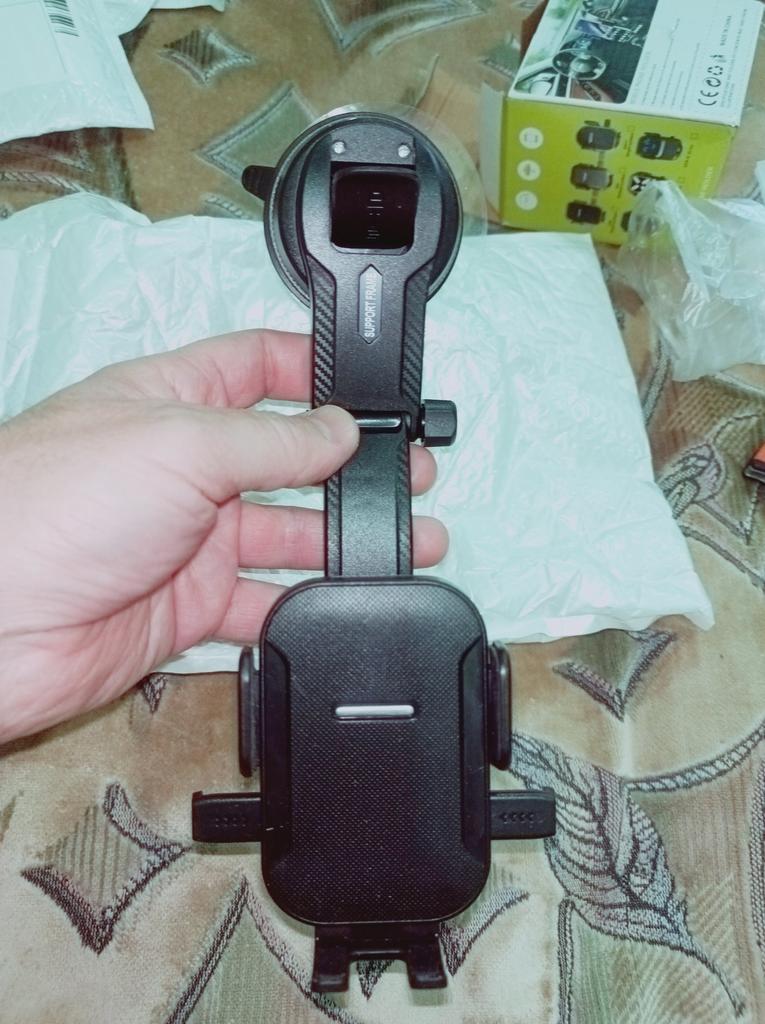 Es ist sehr sauber verarbeitet. Kam in einem in zwei Teile zerlegten Karton an. Die Gelenke sind beweglich. Aber man kann es festziehen und es scheint zu halten. Cool ist auch das Griffsystem des Handys: Man schiebt es an den Seiten auseinander und wenn man das Handy hinlegt und draufdrückt, schnappt es zu.