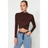 Schwarze drapierte Crop-Bluse mit hohem Kragen Twoaw24bz00164