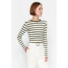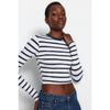 Schwarze, gestreifte Premium-Viskose-Strickbluse aus weichem, eng anliegendem, bauchfreiem Stoff Twoaw24bz00048