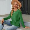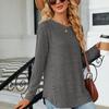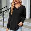 Damen Herbst Winter Solid Top Rundhals Langarm Lose Knopf T-Shirt