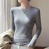 Mode U-ausschnitt Reine Baumwolle Unten T-shirt Frauen Tops Lange Hülse Lose Schlanke Frauen T Shirt Herbst Solide Dame Casual tees 30530