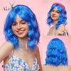ALAN EATON Kurze BOB-Synthetikperücken, hellblonde lockige Perücke mit Pony für Frauen, Cosplay, Alltag, Party, hitzebeständige Faserperücke