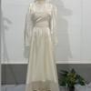 Frühlings- und Herbst-Damenkleid, halbhoher Ausschnitt, langärmelig, Teepause, französische Taille, lange Kleider