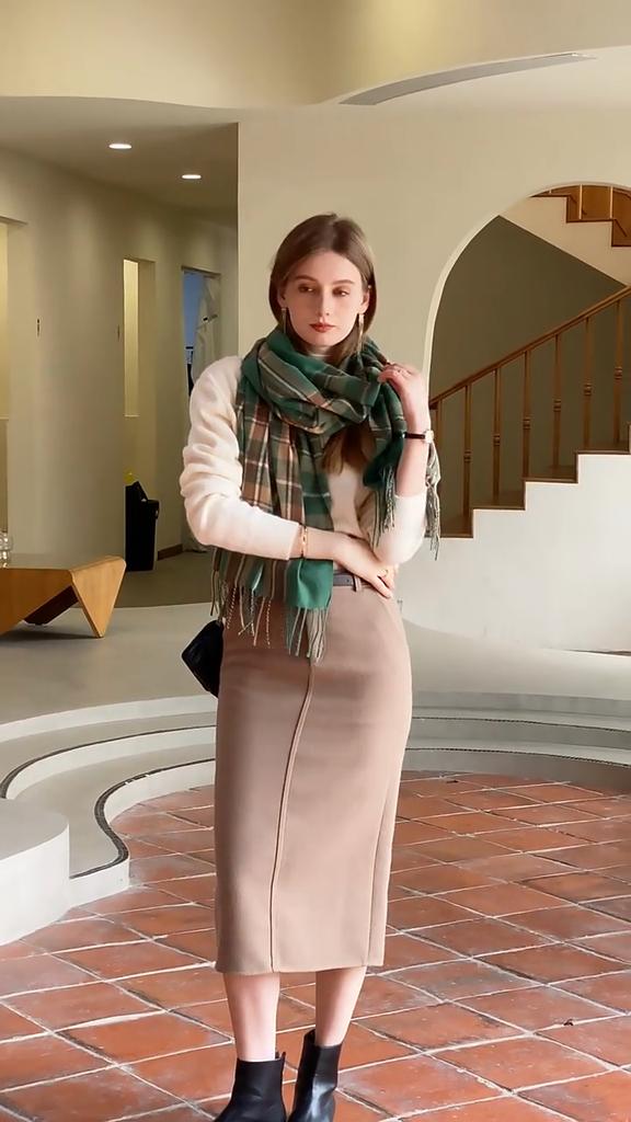 Damenschal Winterschal mit Quasten, kariert, lang, dick, warm