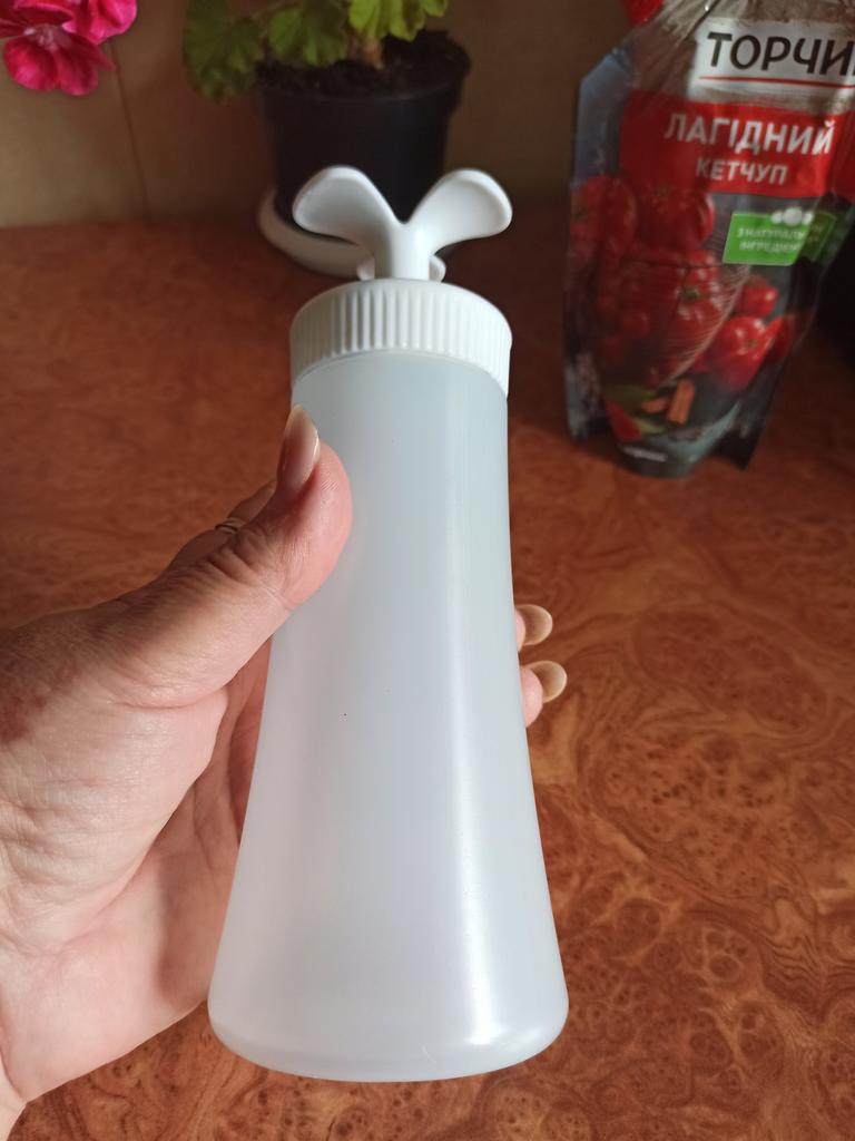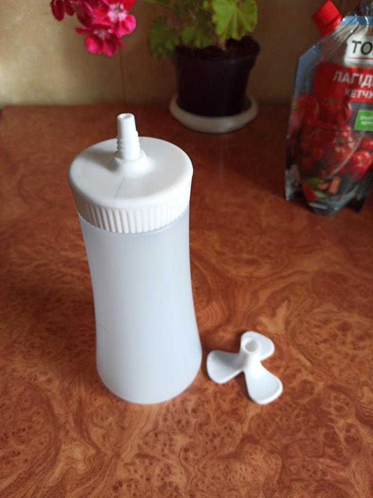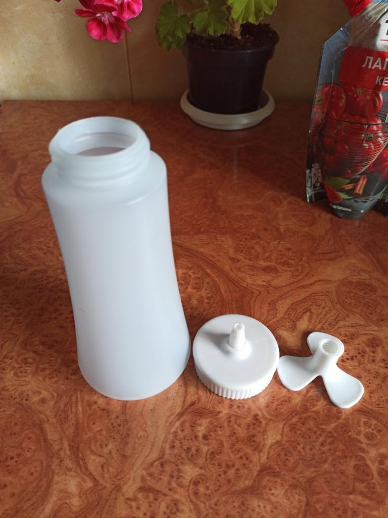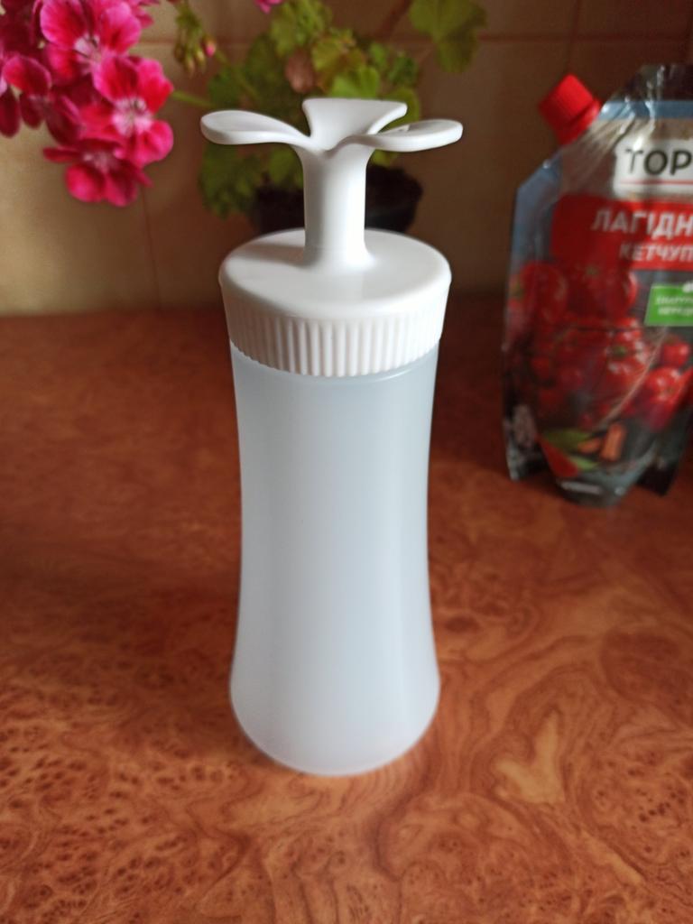 Plastikflasche für Soße. ✔️Hergestellt aus umweltfreundlichem Polyethylen. ✔️Robuste und langlebige Konstruktion für den langfristigen Einsatz in der Küche. ✔️Großer Durchmesser zum bequemen Eingießen und Dosieren von Gewürzen. ✔️Stabil im umgekehrten Zustand, gewährleistet ein problemloses Ausdrücken der Soße. ✔️Spiraldesign mit engem Hals für einfaches und kontrolliertes Ausgießen von Saucen. Flaschengröße : 19,5× 6,5 cm Kam gut verpackt ohne Beschädigungen an. Ich empfehle zu kaufen.