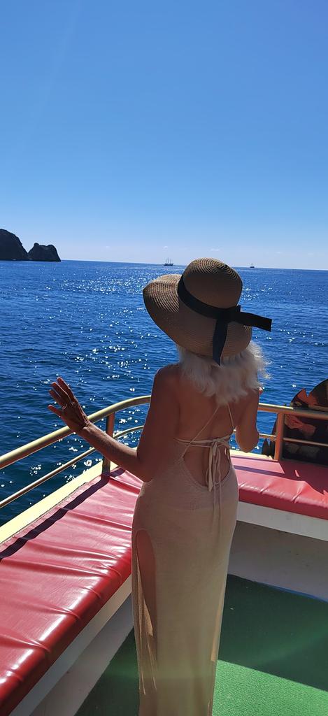 Strandkleid ✨ Unerwartet angenehmer und zarter Stoff, es hat mir gefallen) Bei meiner Körpergröße von 175 reicht das Kleid fast bis zum Boden, ich denke, dass es bei Mädchen bis 165 am Boden schleifen wird. Auf dem Foto sieht man es nicht, aber im Stoff sind glänzende Fäden, das gefiel mir zunächst nicht, aber als ich das Kleid anzog, war es wunderschön, ich habe mir sogar vorgestellt, wie das Kleid aussehen würde funkeln wunderschön am Strand unter der Sonne✨ Ich empfehle