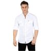 Detail: Einfarbiges Hemd, Hemdkragen, lange Ärmel, schmale Passform, Hemd aus gestricktem Stoff mit Kragenknöpfen und Taschen, Hemd aus gestricktem Stoff mit Druckknöpfen, gemustertes Hemd aus gestricktem Stoff. Enthält 98 % Baumwolle, 2 % Lycra. Es handelt sich um ein schmal geschnittenes Slim-Fit-Modell..