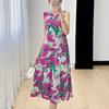 Tank Top Rock Kleid Frauen Sommer Kontrast Druck Elegante Temperament Lose und Schlank V-ausschnitt Ärmelloses Plissee Kleid Weibliche