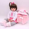 7) Puppenstruktur: Kopf und 3/4 Gliedmaßen bestehen aus weichem Vinyl, der Körper ist aus Stoff mit PP-Baumwolle, fühlt sich weich an und ist ungiftig; Die Puppe mit Stoffkörper kann nicht ins Wasser gelegt werden, sie kann sitzen und liegen.