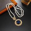 Halskette Perlen Lange Vintage Boho Seil Scheibe Kette Stein Anhänger Böhmische Ethnische Frauen