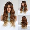 ALAN EATON Ombre Auburn Brown synthetische Perücken, lange lockige Perücken mit Pony, hitzebeständige Damen-Perücke für den täglichen Gebrauch, natürlich aussehendes Kunsthaar