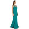 Fierte Abendkleid für Damen, Azr4383, Rundhalsausschnitt, Tropfenschnitzerei, Krepp, Fischgrün, Korallenrot