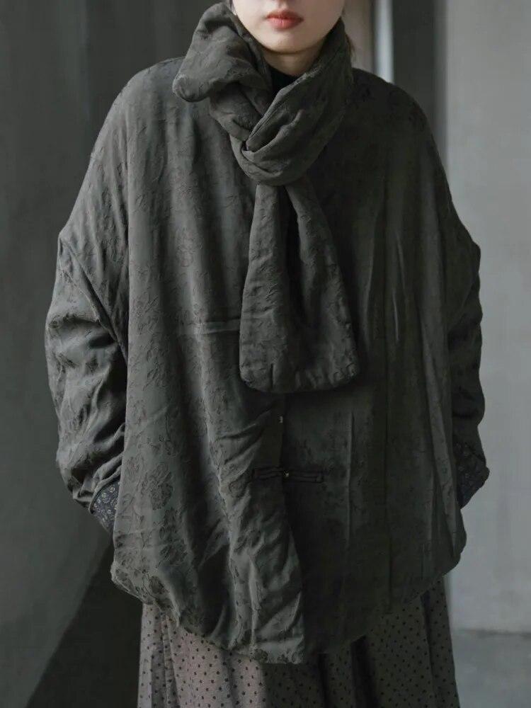 Johnature Frauen Vintage Jacquard Floral Plus Baumwolle Parkas Taste Langarm Schal Kragen Mantel Winter Chinesischen Stil Parkas