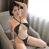 Dreipunkt-Sexy-Bikini, hochgeschnittener Bandage-Tanga-Body mit tiefem V-Einteiler, transparenter einteiliger Neckholder-Badeanzug, sexy Dessous für Damen