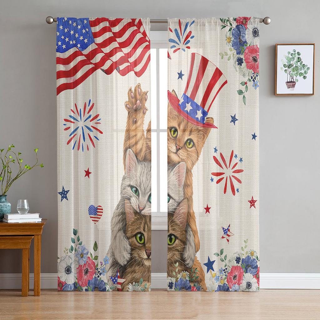 Amerikanische Flagge Mohn Katze Sheer Fenster Vorhänge für Wohnzimmer Küche Kinder Schlafzimmer Voile Hängen Vorhang