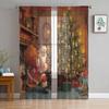 Weihnachtsbogen-Kugel-Weihnachtsbaum-Tüllvorhänge für die Wohnzimmerdekoration, moderne Chiffon-durchsichtige Voile-Weihnachtsvorhänge