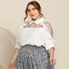 Frühling/Sommer Große Größe Damen Hemd Temperament Revers Perspektive Gestickte Nähte Ärmel Hemd