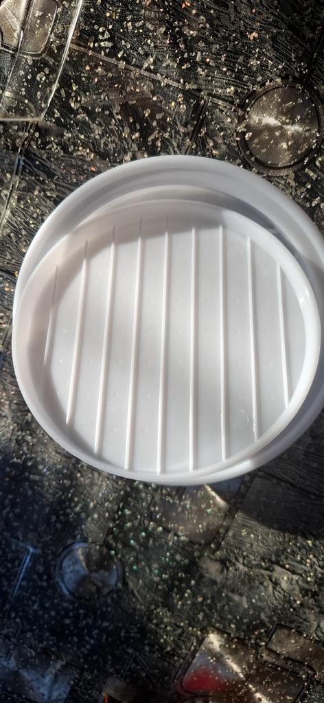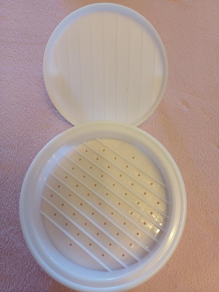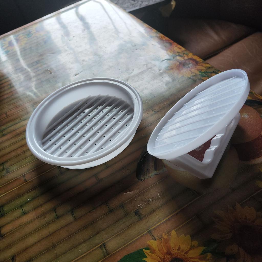 Hamburgerpresse aus lebensmittelechtem Kunststoff, erfüllt die Anforderungen. Ich ergänze. Tests wurden bestanden, das Ergebnis ist in Foto 3 zu sehen. Aus meiner Erfahrung lauten die Empfehlungen wie folgt. Vor dem Gebrauch ist es besser, die Form mit Öl einzufetten, damit sie leichter haften bleibt. Zuerst ist es besser, das Hackfleisch auf den Deckel zu legen, es zu verteilen und dann zu formen, das ist für mich persönlich bequemer. Vorteile: Sie können Hackfleisch nach Ihren Wünschen zubereiten, der Preis ist erschwinglich. 3 Patties können auf einmal in den Elektrogrill gelegt werden. Besser ist es, eine wiederverwendbare Grillmatte zu verwenden. Ich kann es empfehlen.