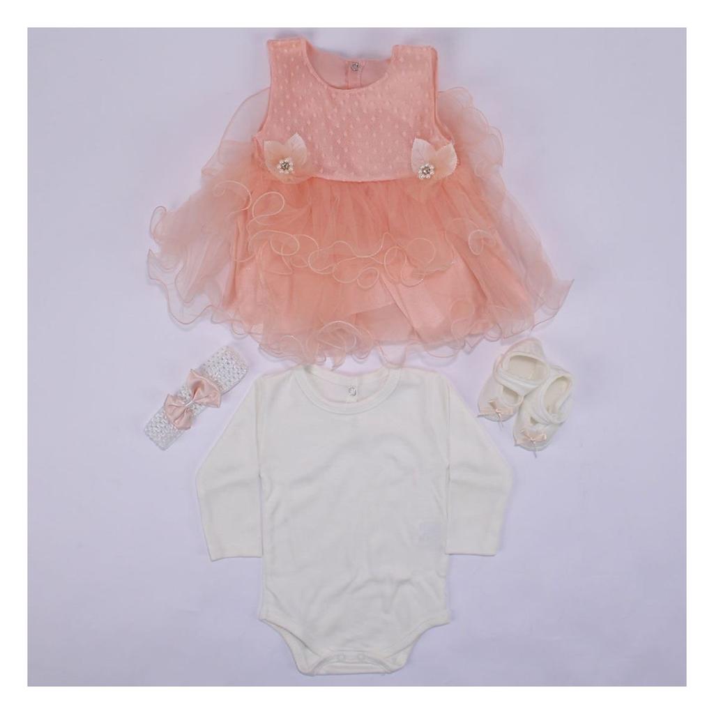 4-teiliges Mevlüt-Set für Babys, Mädchen, Lachs, Tüll, Rüschen, Perlen, 0–6 Monate